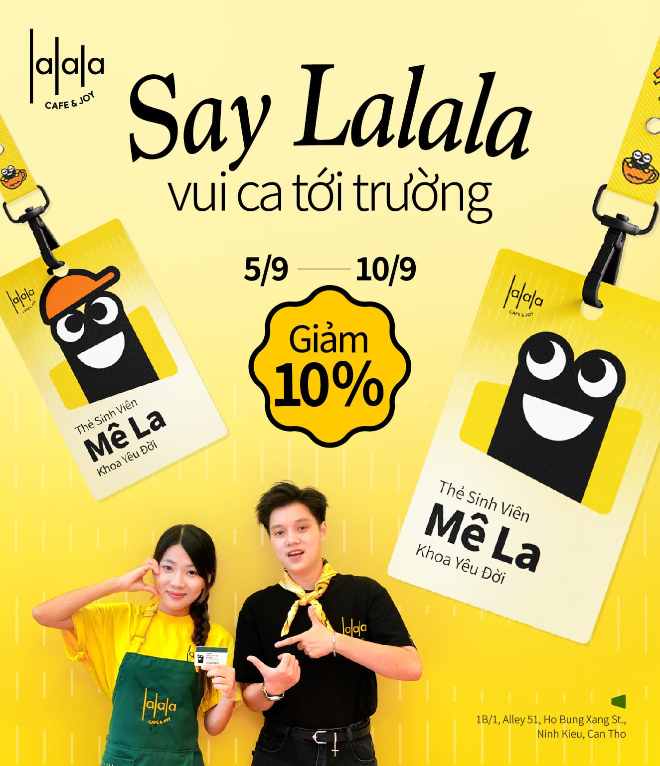 👉 Chỉ cần mang theo thẻ HS-SV hoặc diện đồng phục đến Lalala thì Mê La sẽ được nhận ngay ưu đãi 𝟭𝟬%.